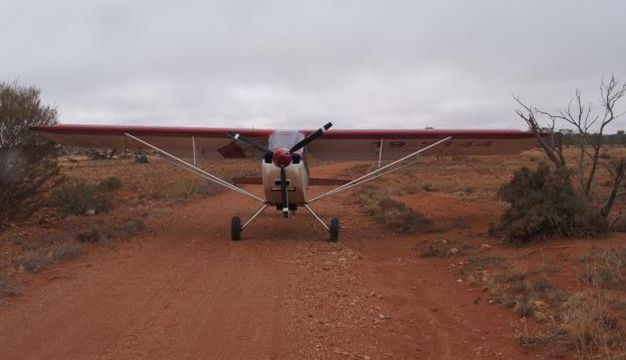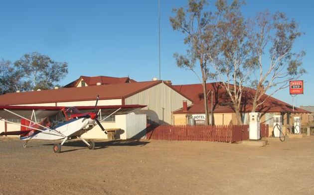 Landed out back of Glendambo Roadhouse (truckstop). It got too narrow to taxi any further, then a roo shooter came along and drove me in to get fuel and a burger.