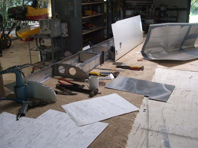The damaged stab at noon. Hans finishing the repair at 6pm.