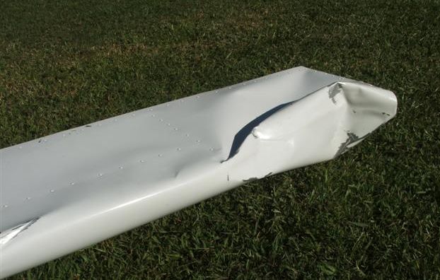 Now imagine taking a hammer and hitting the bottom of your wing as hard as you can – probably get a big ugly dent. The impact from this incident drove the outside door handle right through the wing skin! The door itself has very little mass, so the velocity must have been extremely high to generate enough momentum to cause that puncture!