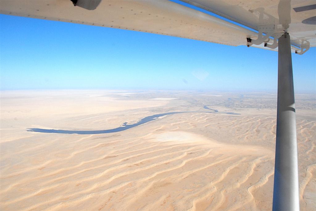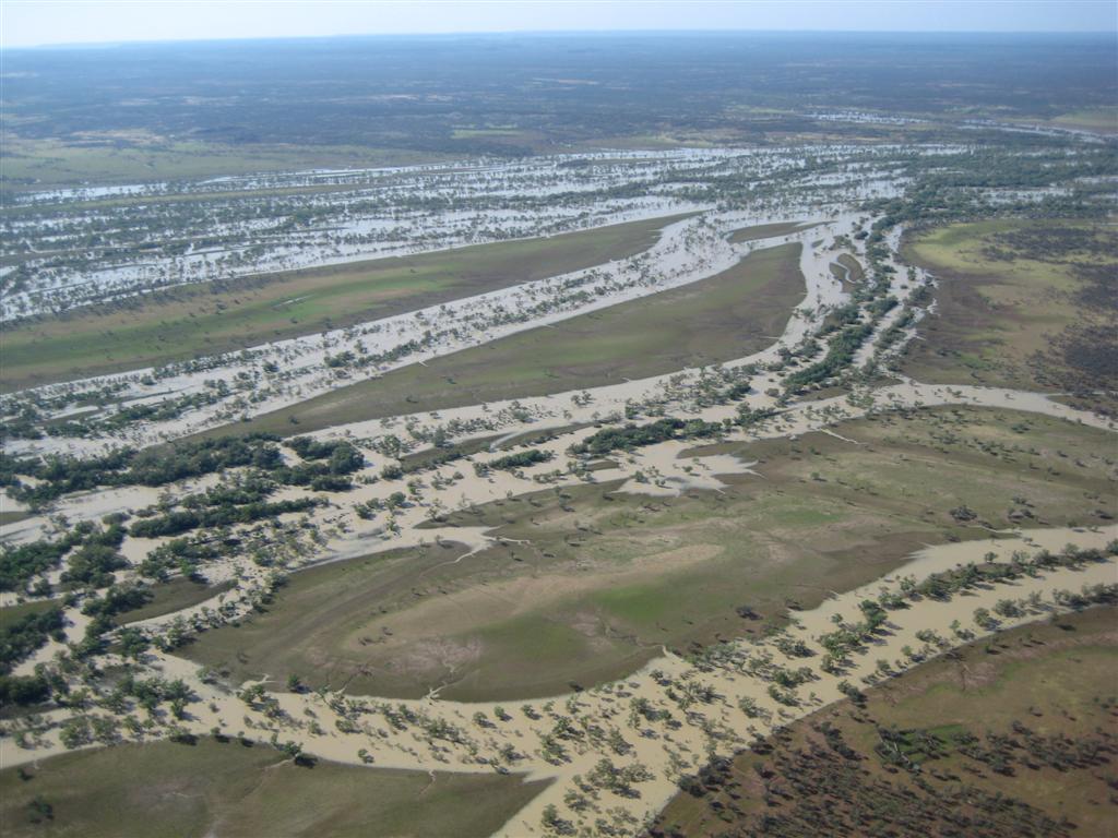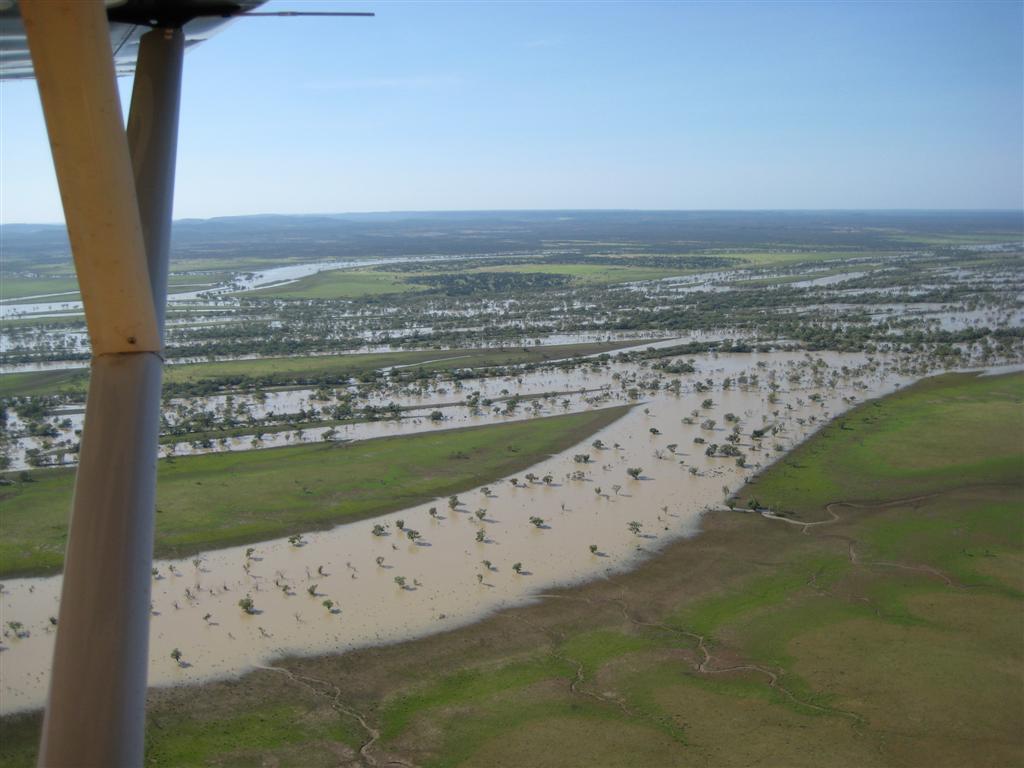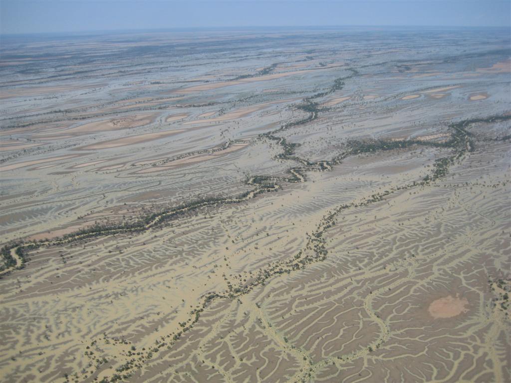 I've flown over the Channel Country several times, and mostly it's been dry or only small waterholes.