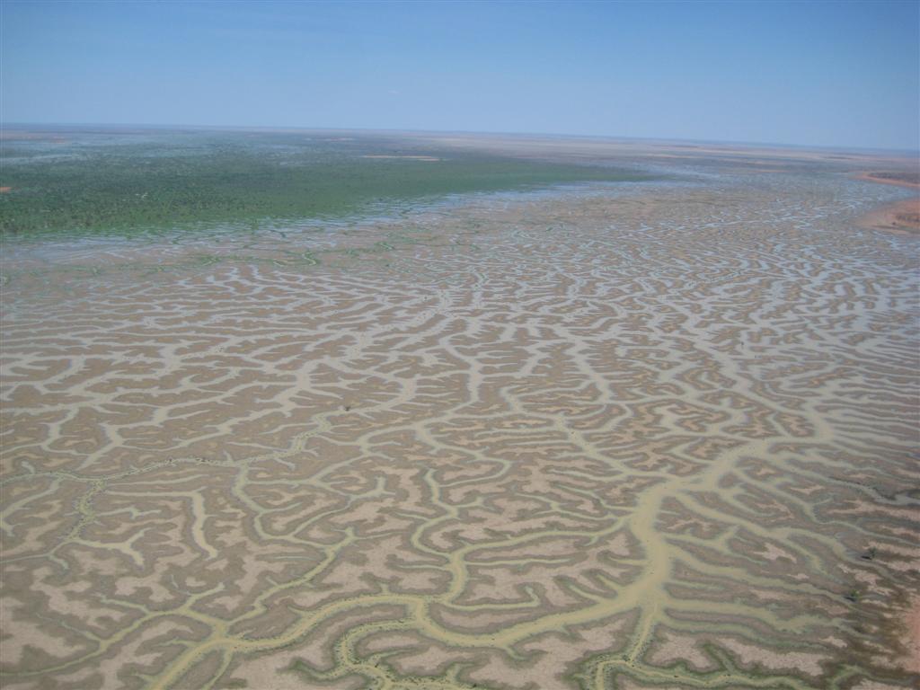 It's significant to note that none of those rivers of the vast Lake Eyre Basin flows to the sea, only to this inland, mostly dry, lake.  http://www.lakeeyrebasin.org.au/
