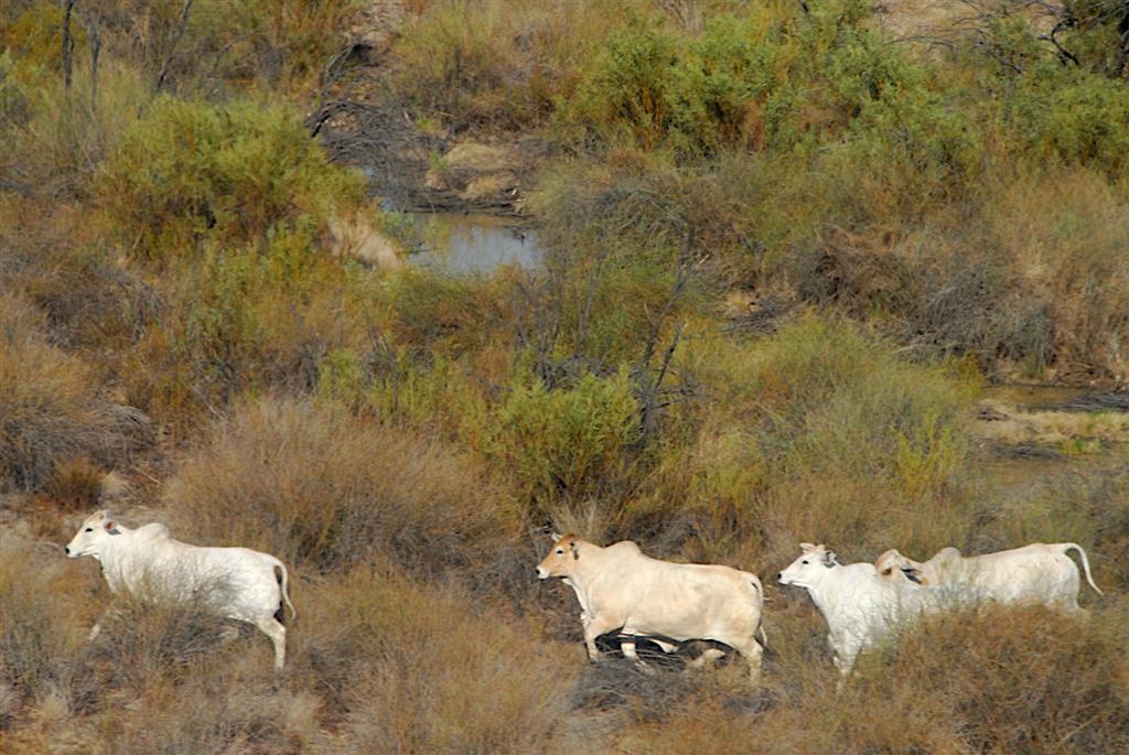 And this is some of the beef that's growing here.  That's a lot of beef right there, and the best eating beef of all - real 'red meat', so much leaner and tastier than that soft, fatty, grain-fed stuff.  And healthier as well, with less fat and absolutely no antibiotics or chemicals.  Only problem is how to catch them in that wild country.....  That's an adventure in itself, with the help of helicopters when the country dries out.