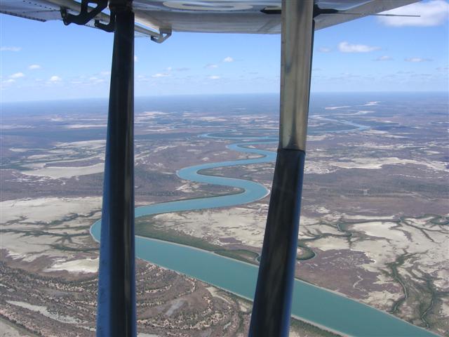 Next morning low cloud confirmed that an upper level trough was coming as forecast, so we wanted to get home ahead of it. Fortunately it cleared just as we got to the Carnarvon Range so we were able to fly up and have a good look down into the Gorge – very rugged and spectacular! Bill marked the nearest airstrip on his GPS so he can come back and hike in there some day. Refueled at Roma, while another very helpful fellow buzzed into town with his ute to get us hamburgers - more country hospitality. The Darling Downs had had rain so it was a patchwork as far as you could see of rich red soil and vibrant green crops – farming was looking hopeful for a change….