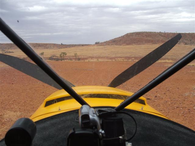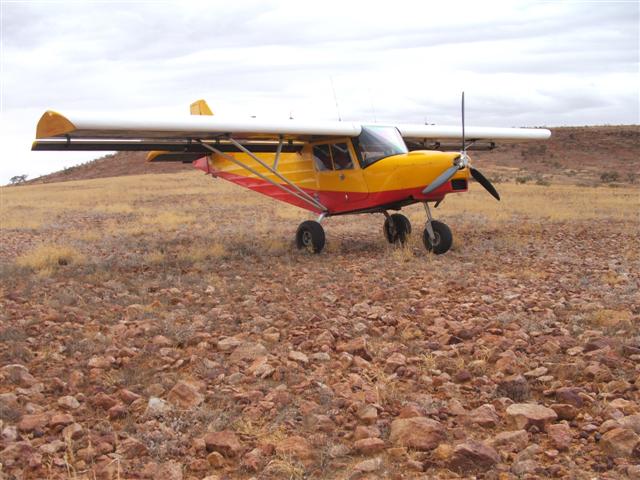 Even tho I often land in pretty remote spots, I always have a plan of action to get help if it goes wrong…. Six miles away I crossed the road that I had noted on the map, and was pleased to see a couple of 4WDs making their way along it. That road was my back-up this time, and it was good to see it in use. I usually travel alone on these adventures, so I’m completely dependant on my own resources, and so have to be very attentive of the possible consequences. Even in areas that are seemingly remote to us, this is someone local’s ‘patch’, whether they be graziers, road workers, or gas field crews, and they know how to move around it competently. I always have at least one plan available to access help from locals, and carry several hundred dollars in cash to pay for their services if necessary. They’re very hospitable in those parts, but I don’t expect them to give the time and vehicles to assist me, while I’m just out there playing around. There are also a lot of recreational 4WDs out here this time of year, on their own outback adventure trips, and most of them are well-equipped and competent. Every vehicle out here is equipped with UHF CB radio. I have UHF in the aircraft and keep it on scan in order to keep track of which channels are active, and a hand-held to carry if I have to walk. I’m a good strong walker, and have a lot of experience finding my way around the ‘bush’, which is so much easier these days with good maps and a GPS. This is assuming I’m still able to walk, and the chances are pretty good in such a sturdy aircraft that lands at 30 kts. Most likely problem would be a collapsed landing gear or a busted prop…. The next back-up in the plan of action would be to call on the VHF area frequency to try to contact a high-flying aircraft somewhere, and ask them to contact the nearest police and tell them the situation. The very last option would be to activate my ELB, and put in action all the official rescue squad that entails……