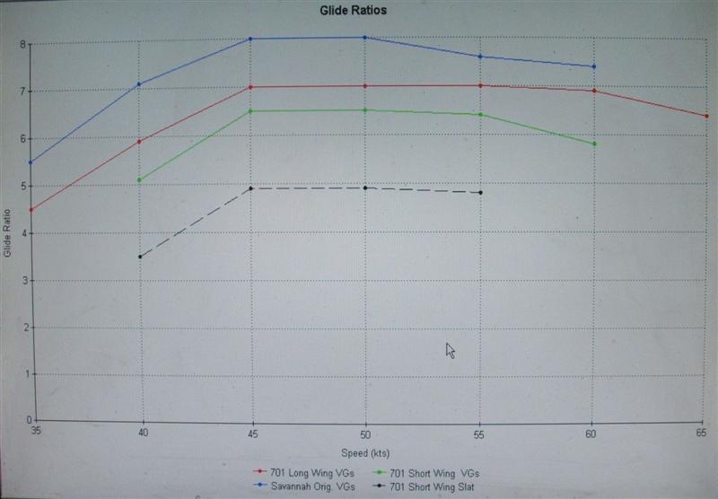 Fuel consumption is more difficult to compare accurately due to different props. At 75kts economy cruise over a 50hr cross-country trip, the original 701 with slats, used 17 litres/hr (4.5gal/hr), while the Savannah without slats used 13 litres/hr (3.4 gal/hr). That's 25% more with the slats, and makes a heck of a difference for fuel planning on long flights...... On a more recent 38 hr trip at 80kts, the 701 with long wing and VGs, and the Savannah, both used 16.4 litres/hr (4.3gal/hr).