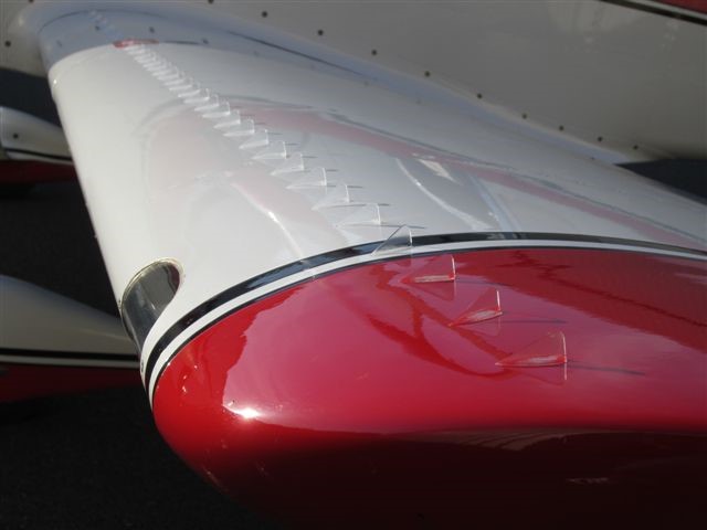 The vortices generated with this installation are tenacious. They resist span wise gusts and hang on deep into the stall progression. In addition, aileron and pitch authority are greatly improved at slow speeds.