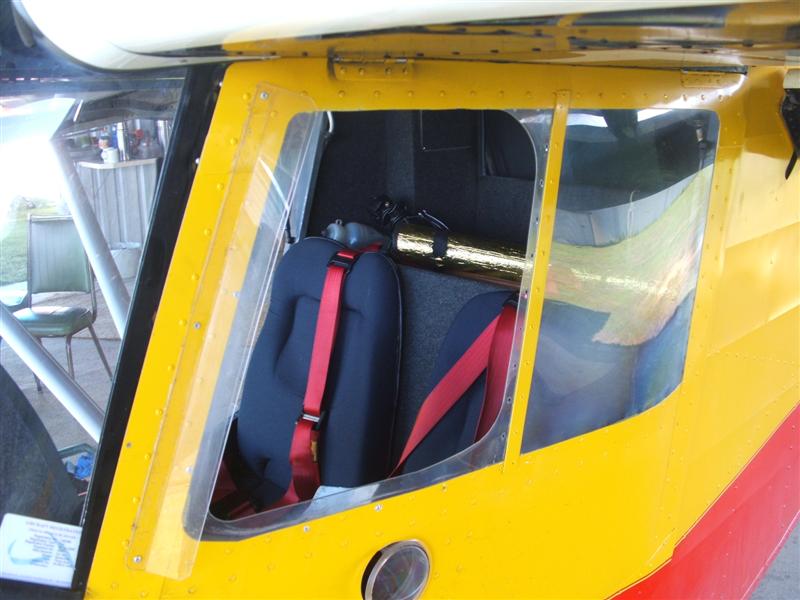 The windows hinge at the top and swing up into the cabin, and are held up by velcro tabs to the overhead consule.